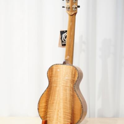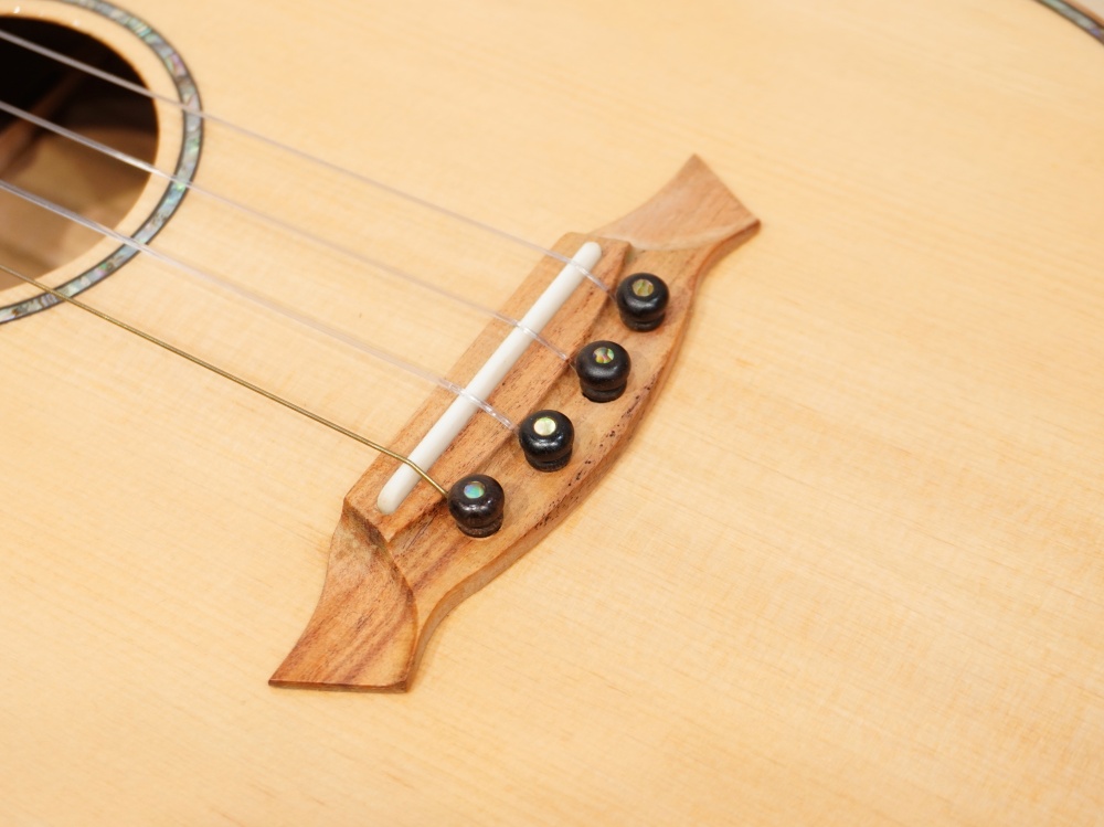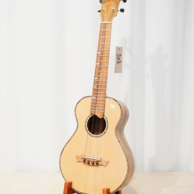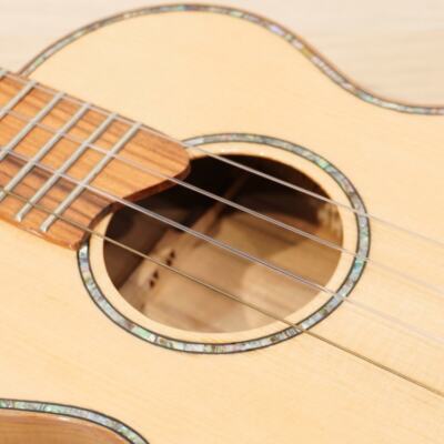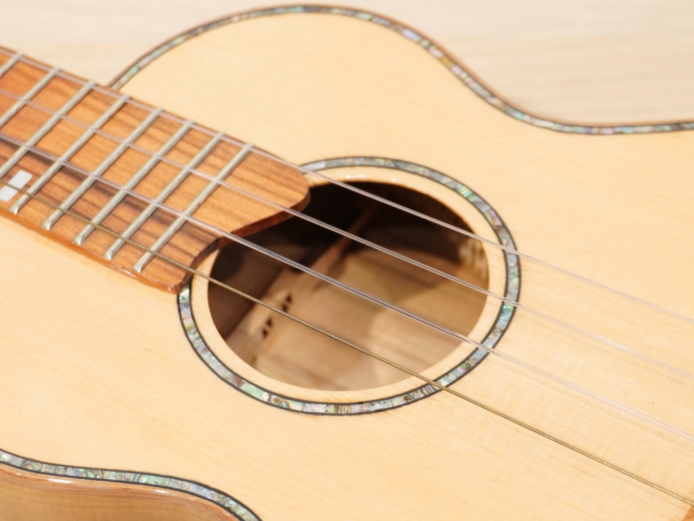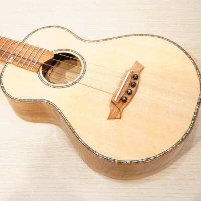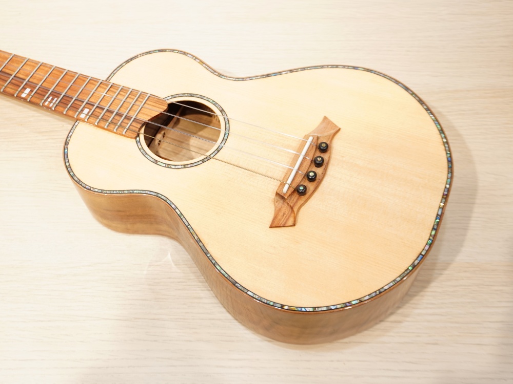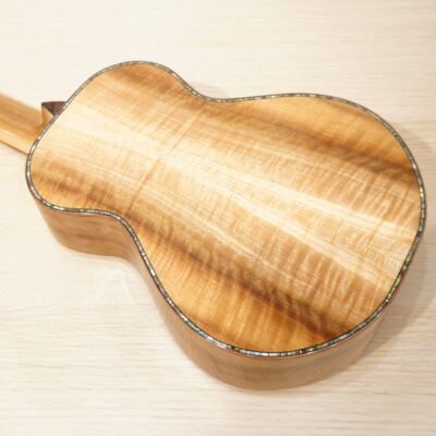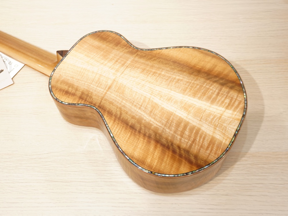 テナーサイズ、トップにポートオーフォードシダー、サウドバックにフィギュアドマートルウッドを使用。