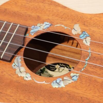 ラベルやインレイデザインはイラストレーター小林晃氏 (Francegum)が担当。とっても可愛らしいウクレレです。