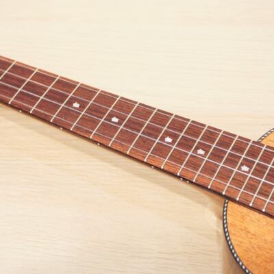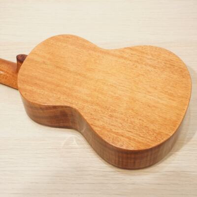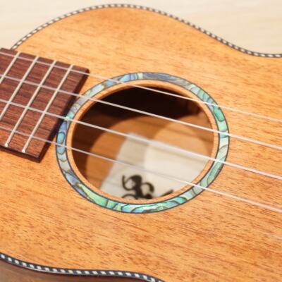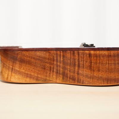 オールマホガニーではなく、サイドにハワイアンコアを使用、やわらかさとコアのコロッとした特徴が合わさったウクレレです。