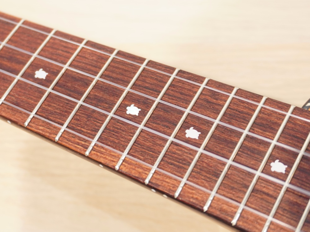 ヘッドにはフラガール、ポジションマークはホヌ(海亀)が!とても可愛いウクレレです。