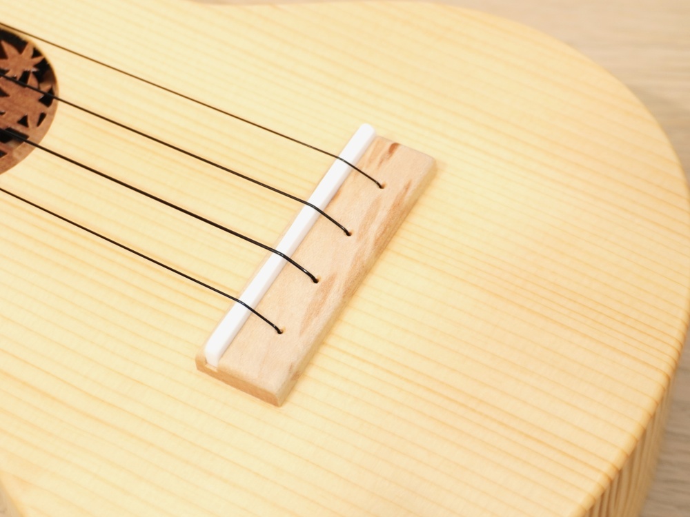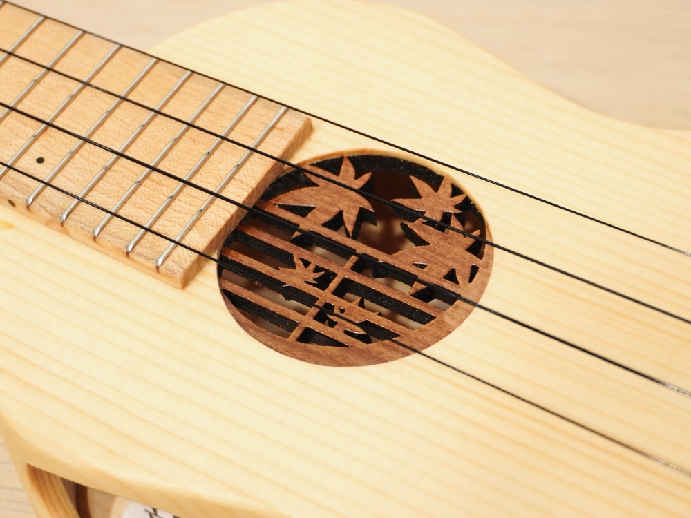 指板やブリッジには北海道産のイタヤカエデ材を使用しています。